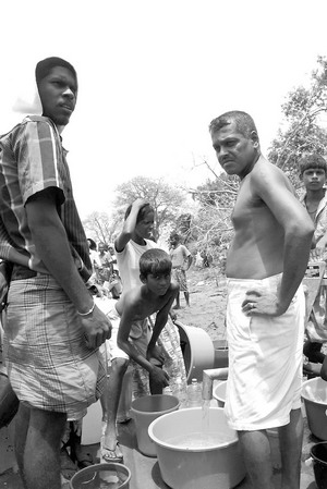 5月26日,在斯里兰卡北部瓦武尼亚一个难民营里,难民们在一口水井边打水。斯里兰卡政府军与反政府武装泰米尔伊拉姆猛虎解放组织(猛虎组织)长达26年的武装冲突于本月19日宣告结束。在战争的最后阶段,约有30万平民